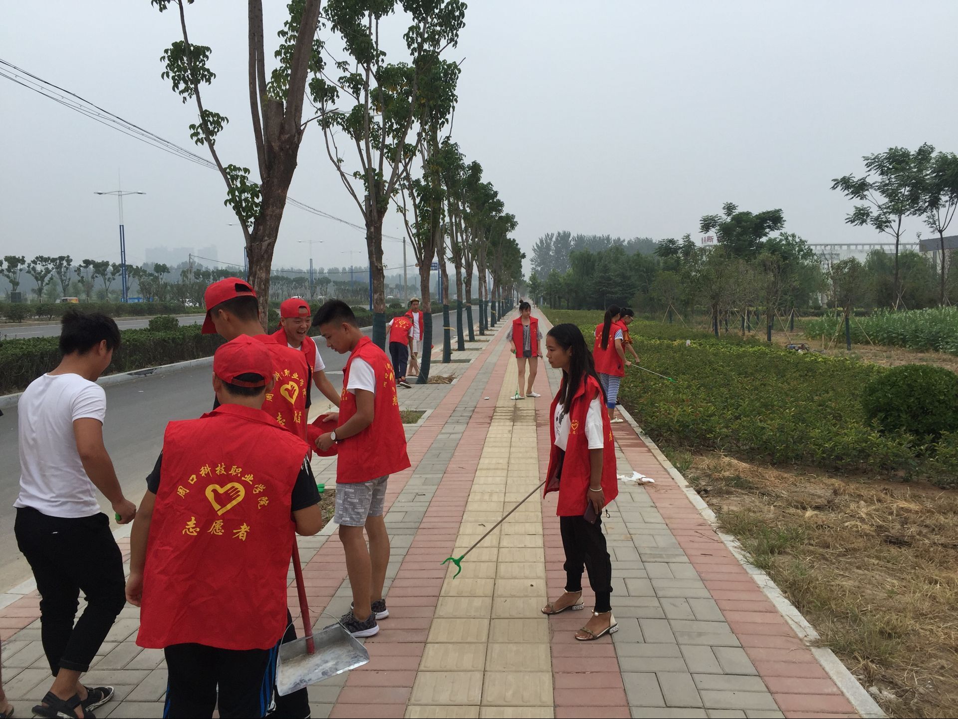 為積極響應(yīng)周口市政府倡導(dǎo)的關(guān)于集中整治環(huán)境衛(wèi)生,創(chuàng)建周口城市文明建設(shè)的活動(dòng),周口科技職業(yè)學(xué)院在文昌大道大成路騰飛路段設(shè)立了衛(wèi)生監(jiān)督崗,針對(duì)行人隨意垃圾堆放、丟棄垃圾的情況給于監(jiān)督和治理,7月09-8月20日以來(lái),我院團(tuán)委發(fā)起了維護(hù)道路整潔,展周科風(fēng)采為主題的長(zhǎng)達(dá)兩個(gè)月的志愿者活動(dòng)。我系在校學(xué)生李書、郭耀輝等同學(xué)參加了大約19人參加,組對(duì)該路段衛(wèi)生進(jìn)行集中清理,無(wú)論是炎炎酷暑還是大雨滂沱,都不能阻擋他們愛(ài)國(guó)愛(ài)家愛(ài)周口的熱情。