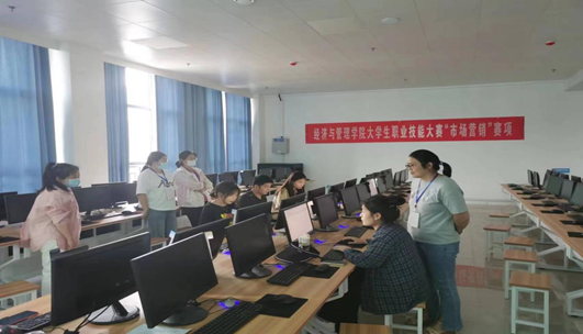 根據(jù)校級比賽對接省賽要求以及學校發(fā)布的《2023年全國職業(yè)技能大賽賽項規(guī)程與賽題》文件,我院市場營銷專業(yè)符合市場營銷賽項要求。經(jīng)過對全院市場營銷專業(yè)學生宣傳推廣,有25名學生報名參加了市場營銷技能大賽。學院首先進行了初賽的選拔,最終選出了10名學生進入了決賽。根據(jù)比賽日程的安排, 6月7日下午由李明明、劉坤、夏慧芳、梁淑慧、倪金升、王明明老師擔任市場營銷評委,對參加決賽的學生進行打分。在決賽期間,學校實訓中心王秋鋒主任及其他學院的裁判老師親臨現(xiàn)場進行了指導和點評。