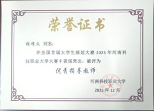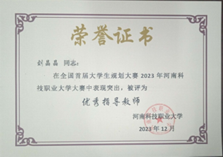 比賽獲獎不僅是對獲獎選手們的支持和鼓勵,更是對獲獎選手身后的指導(dǎo)老師的肯定。在本次大賽中,我院劉晶晶、張靖文兩位老師被評為“優(yōu)秀指導(dǎo)教師”。